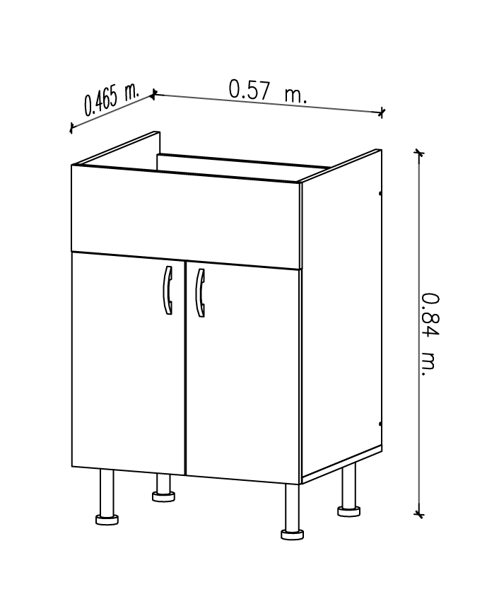 | Descripción del Producto: | Mueble Lavadero 2 puertas de abrir con patas regulables. No incluye Bacha. Incluye todos los herrajes de armado. No incluye herrajes para amurar contra la pared. |
