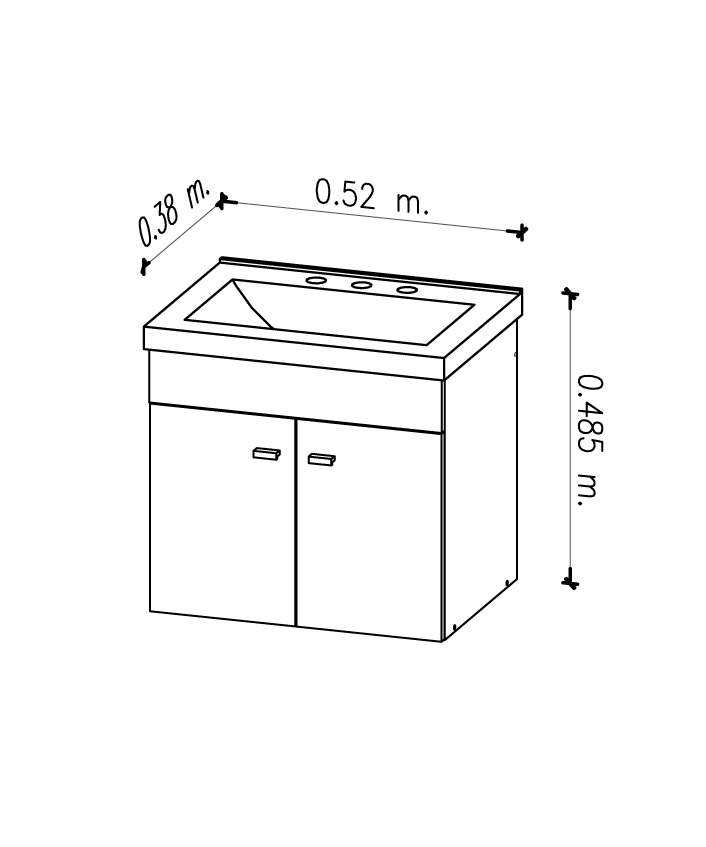 | Descripción del Producto: | Vanitory colgante dos puerta de abrir de melamina blanco. Incluye bacha de poliuretano de alta resistencia 3 agujeros. Incluye todos los herrajes de armado y fijación a la pared. |