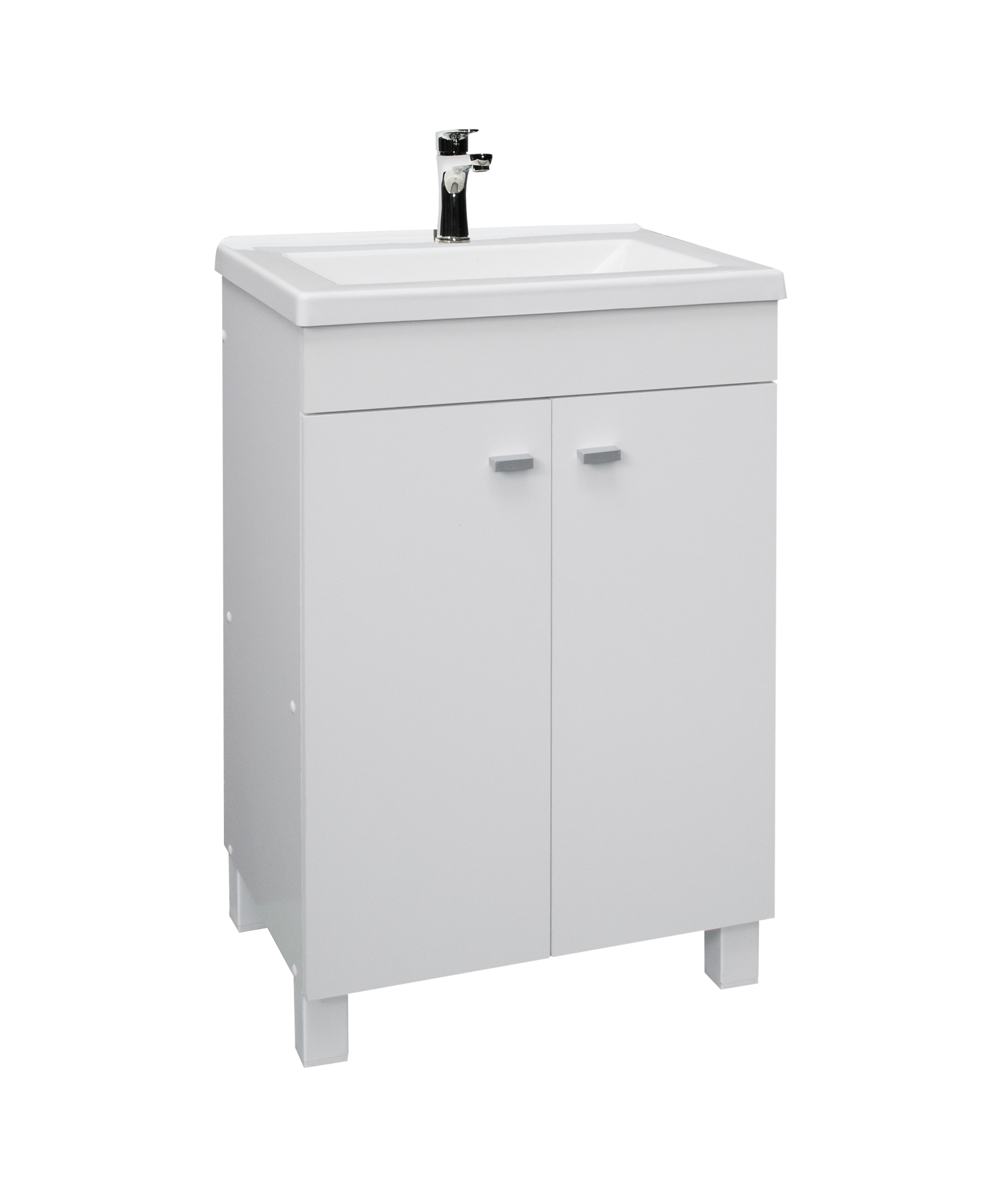 | Descripción del Producto: | Vanitory dos puerta de abrir de melamina blanco con patas. Un estante interior. Incluye bacha de poliuretano de alta resistencia monocomando. Incluye todos los herrajes de armado. No incluye herrajes para amurar contra la pared. |